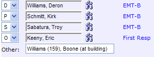 If you have a 159 driver on your crew, be sure to note this in the "Other" box. We need to keep paid and volunteers separate for LOSAP and statistics. Use something like Williams(159) or van Hise(HVES).