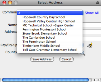 "Common" gives a dropdown list for automatic entry of common addresses.