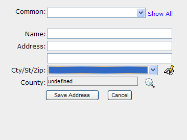 "Cty/St/Zip" all common local towns are in dropdown list. For anything else, click on the icon of