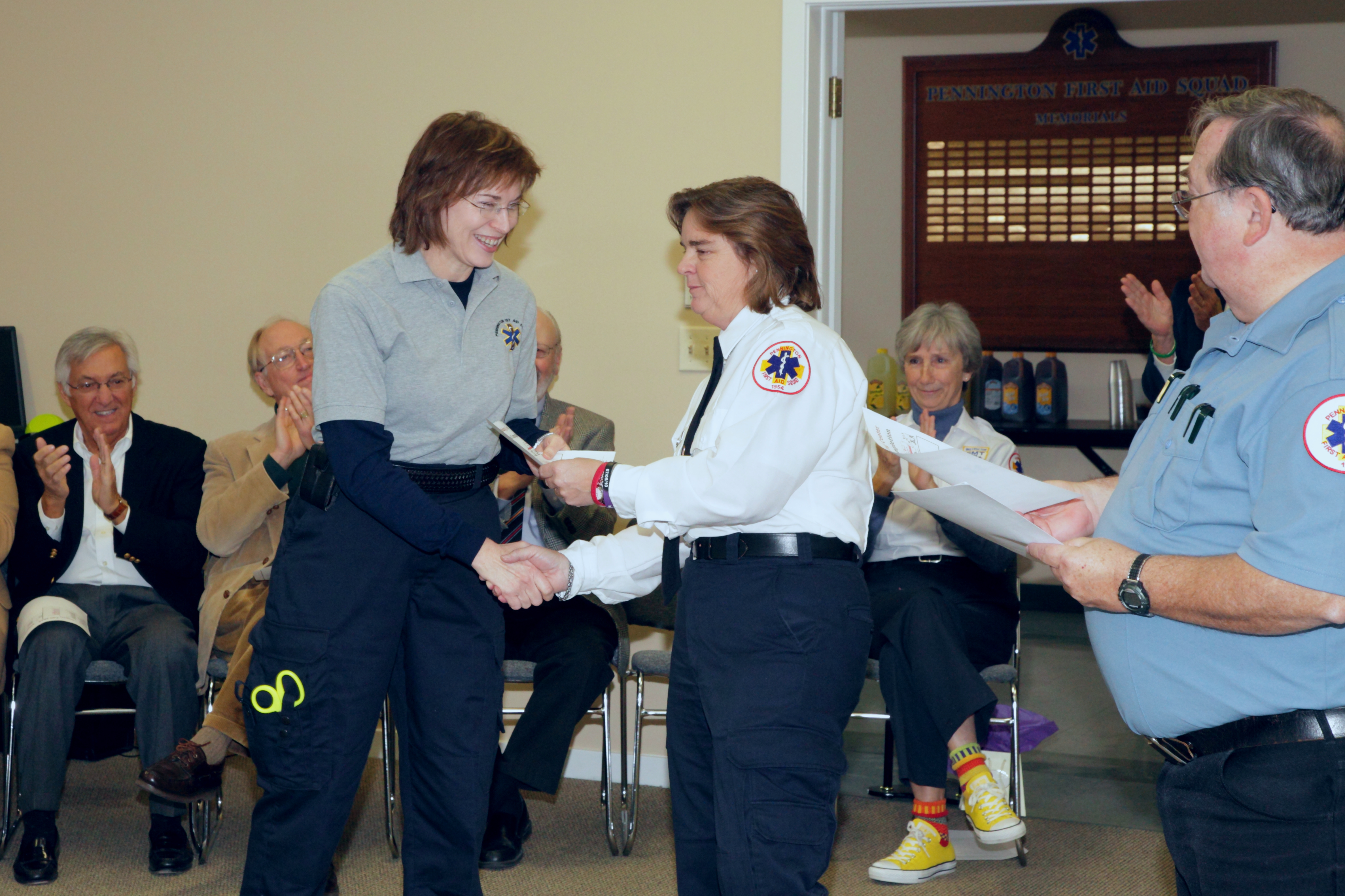 Sarah Hopkins receives course completion certificate from Cindy Orlandi and Daniel Boone