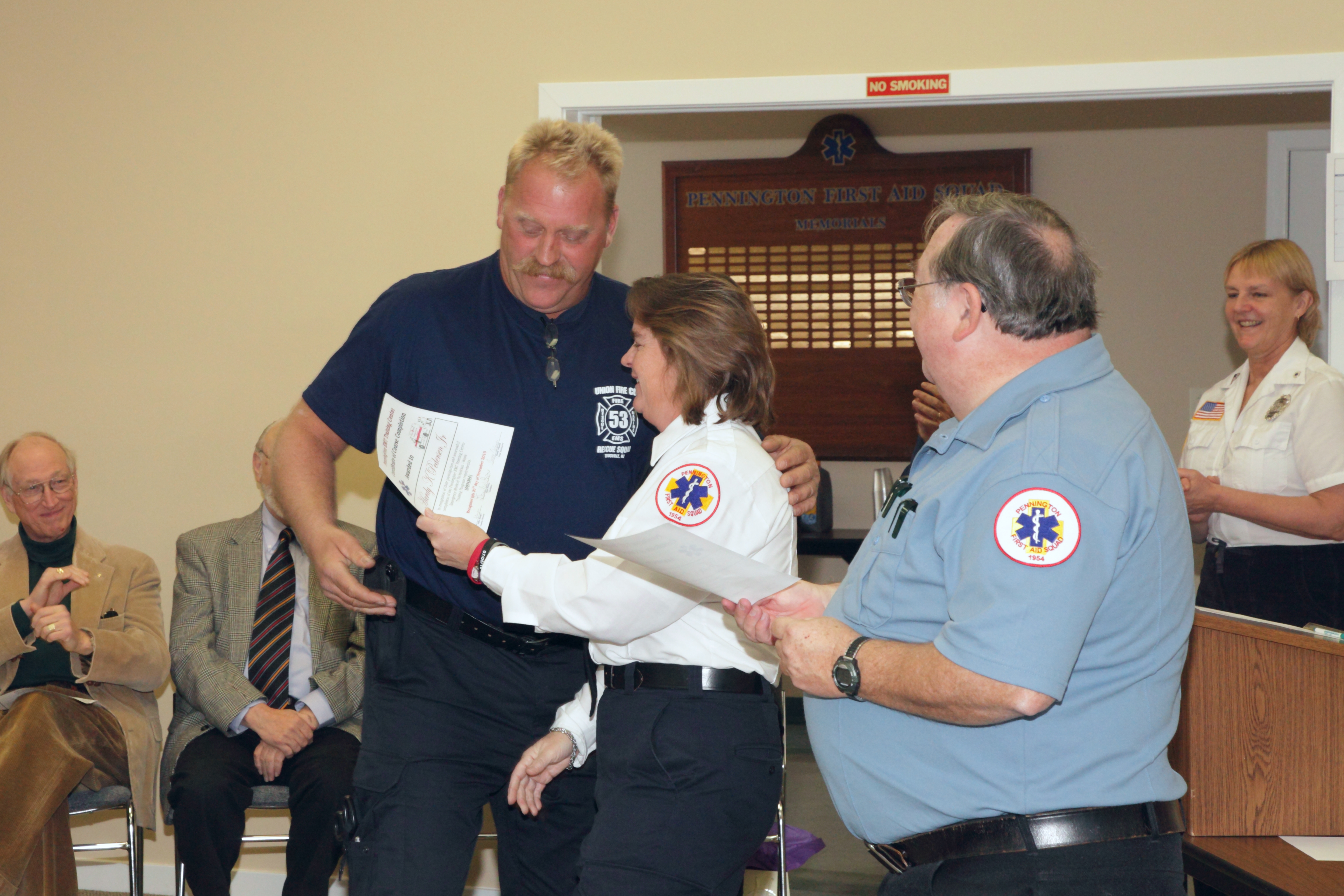 Kurt Pedersen receives course completion certificate from Cindy Orlandi and Daniel Boone