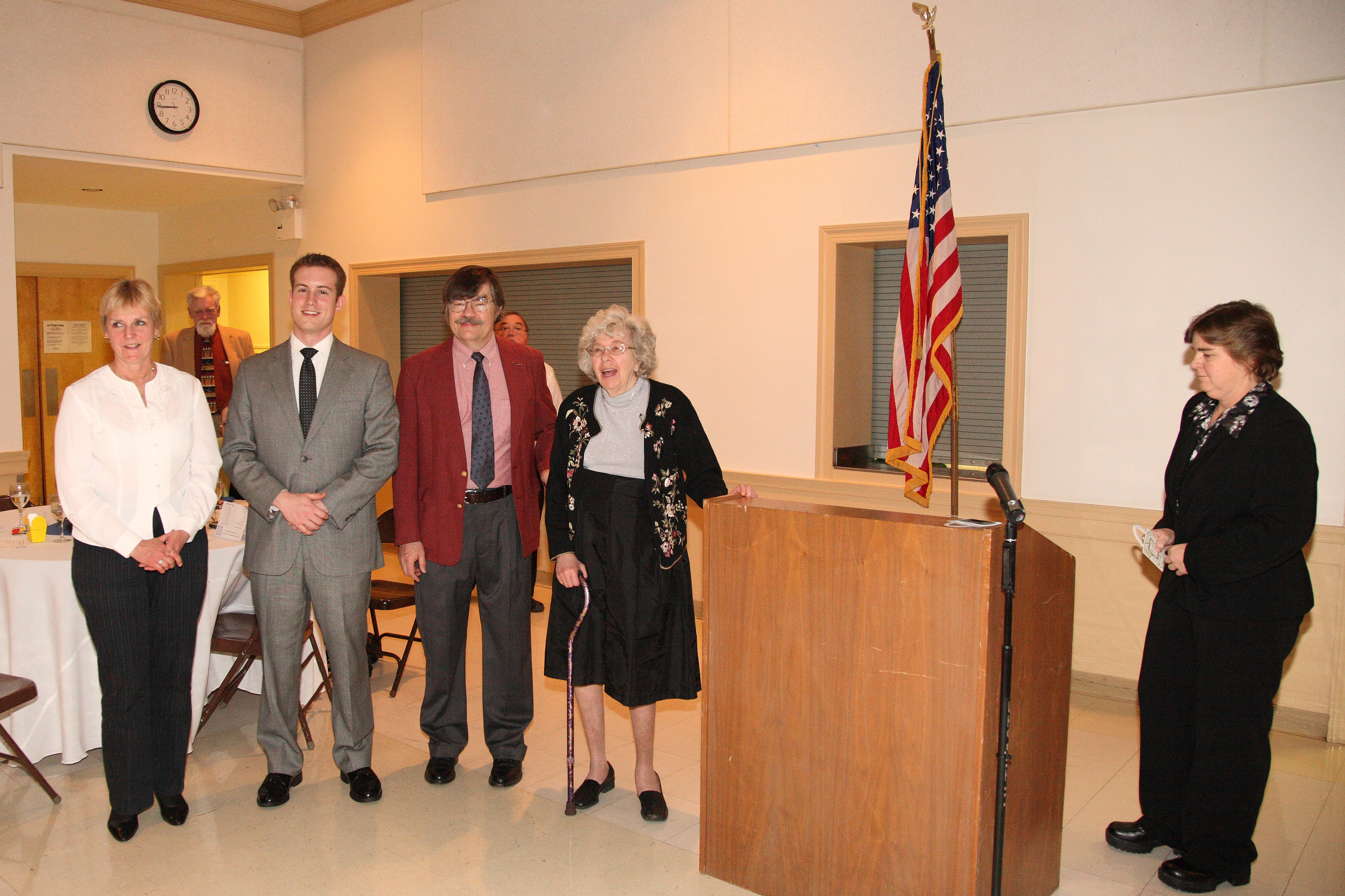 Cindy Orlandi presents service awards: Alice Freeman, Matt Burd - 10 years; Kirk Schmitt, Julie Aberger(missing) - 20 years; Jessie Bailey - 35 years