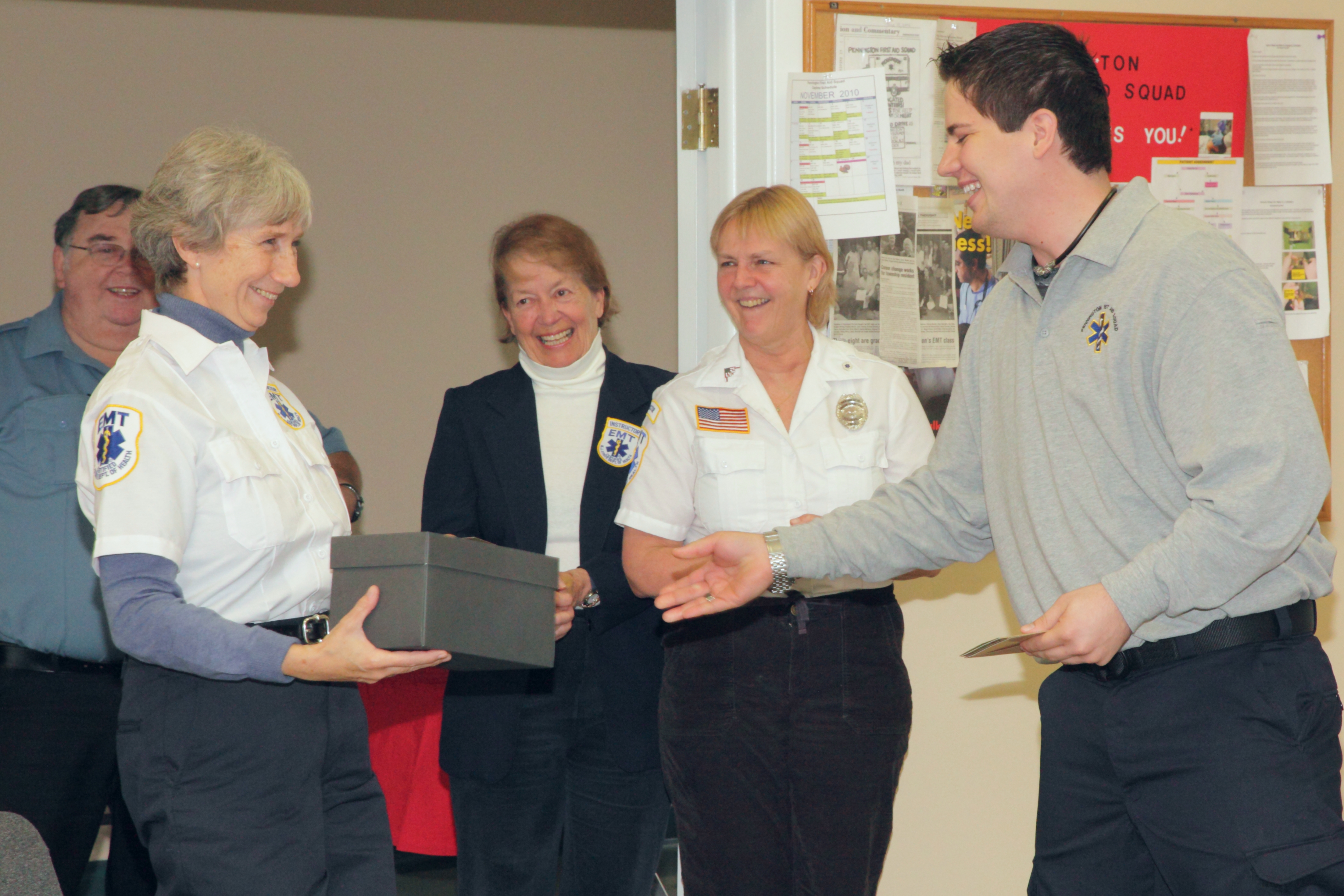 Julie Aberger receives gift of gratitude from fall class presented by Shane Baldorossi