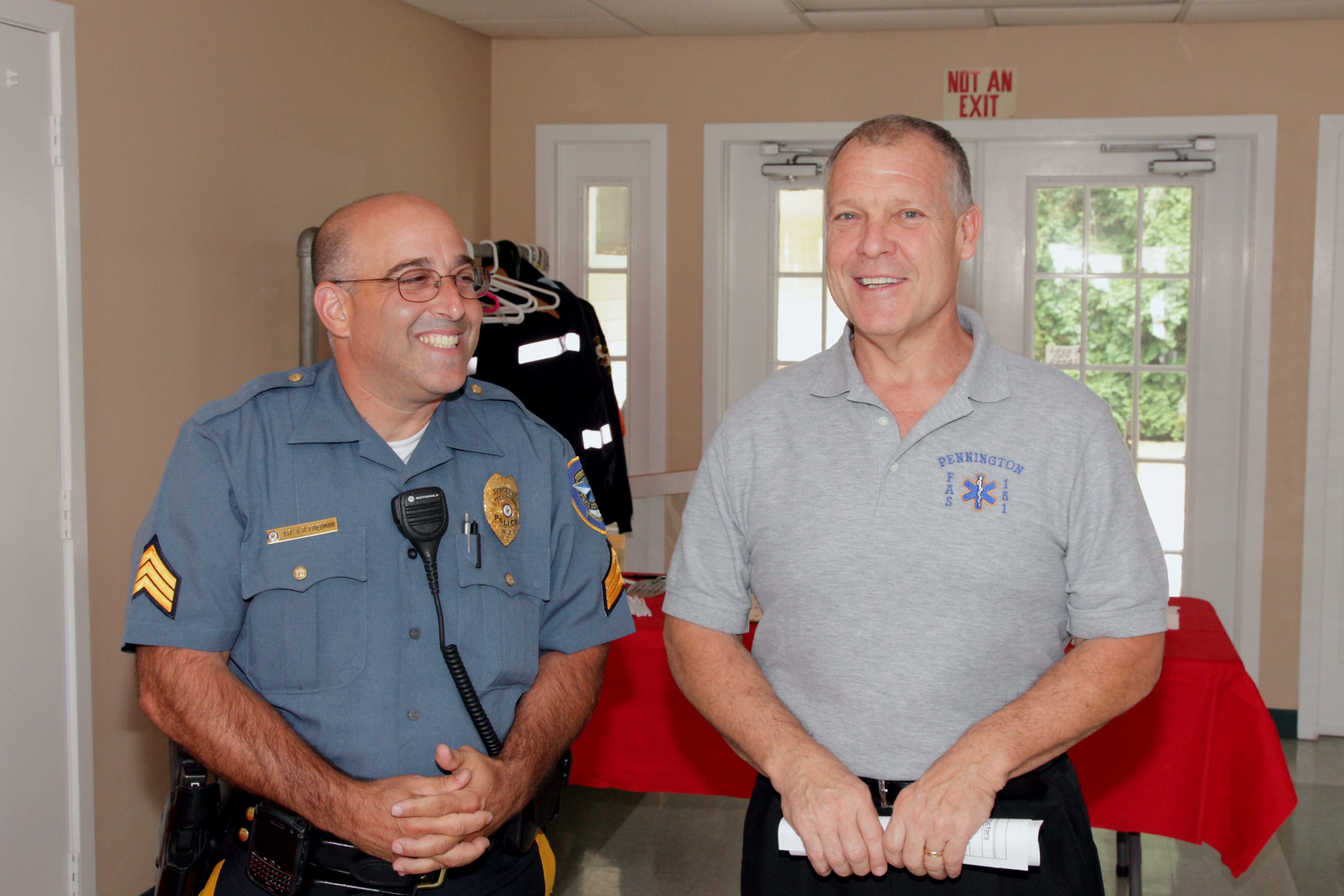 Sergeant Steve Friedman, Pennington police and summer EMT graduate, Thomas Liwosz
