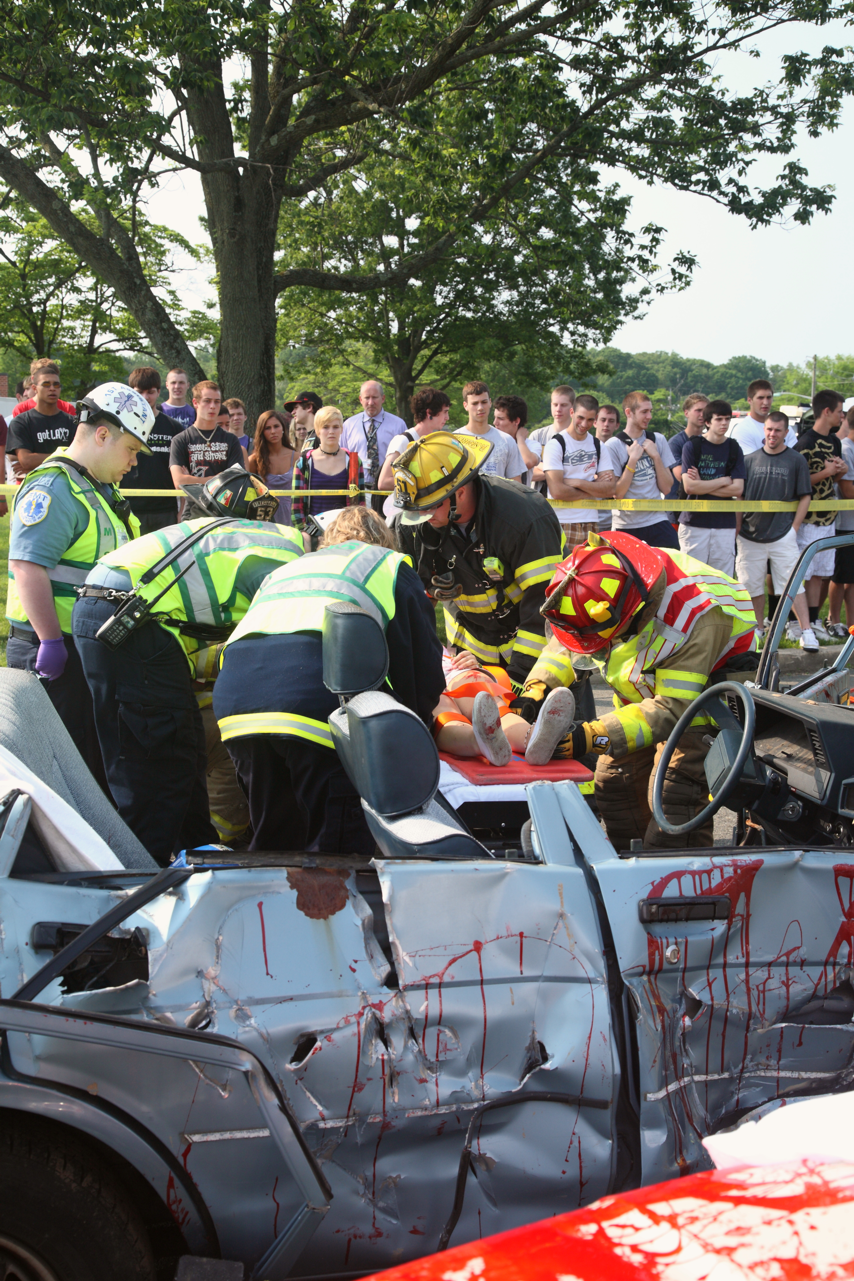Extrication of second critical patient, played by Melissa Helmstetterr.
