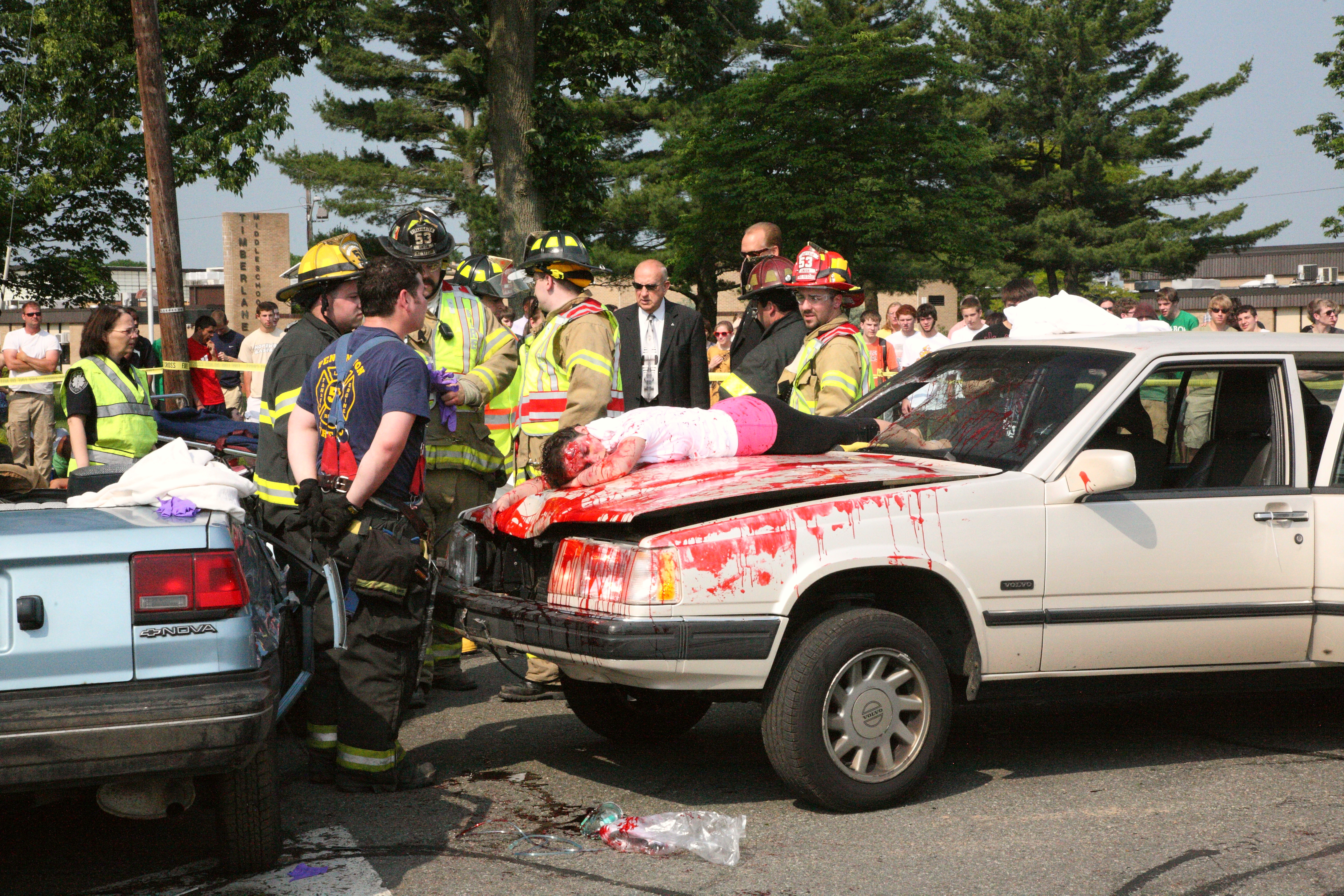 Morticians from Wilson-Apple arrive to deal with fatality, played by Natalie Santos. This would normally be the County Medical Examiner.