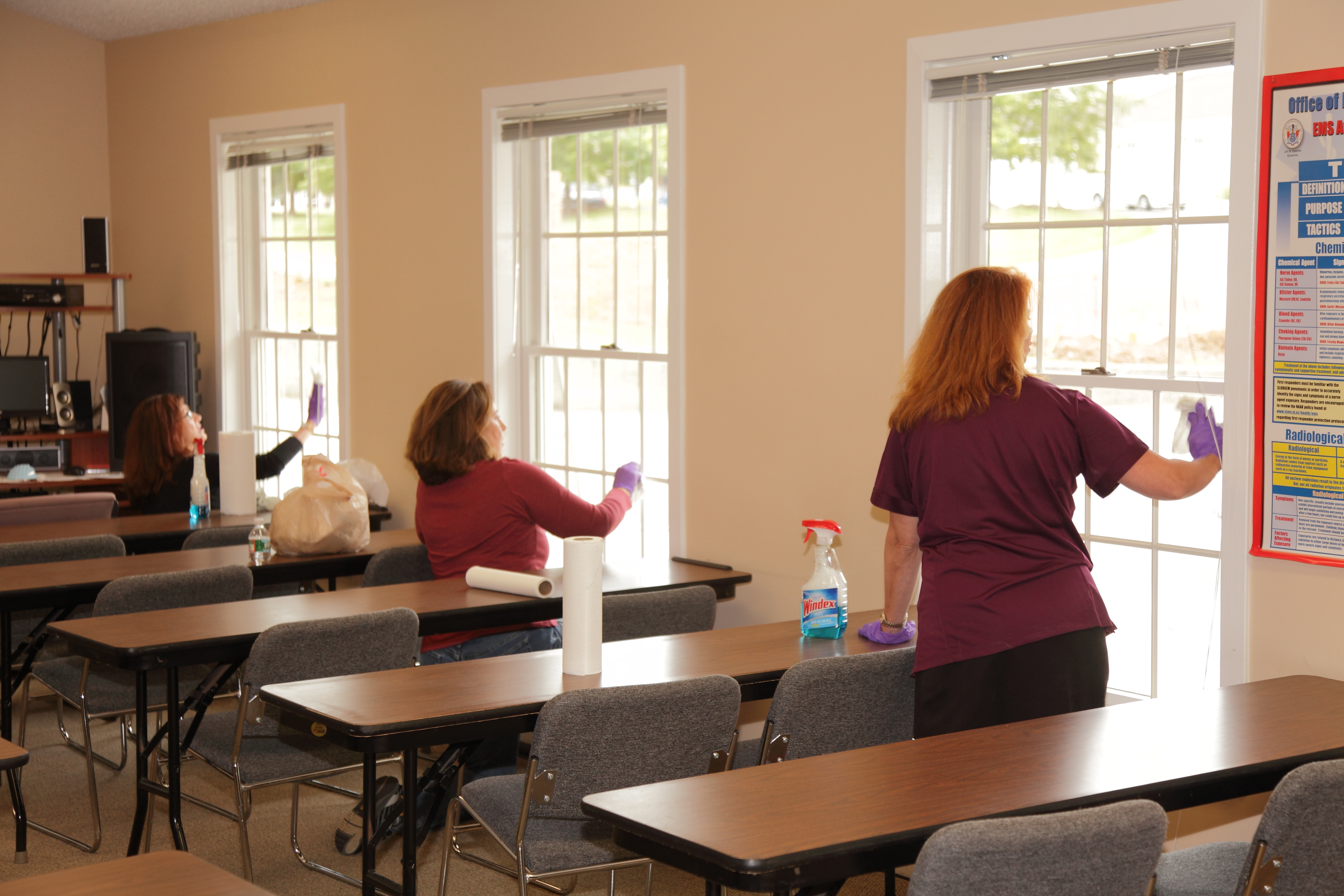 Helen Fritz, Lisa Hulbert, Donna Murray team clean training room