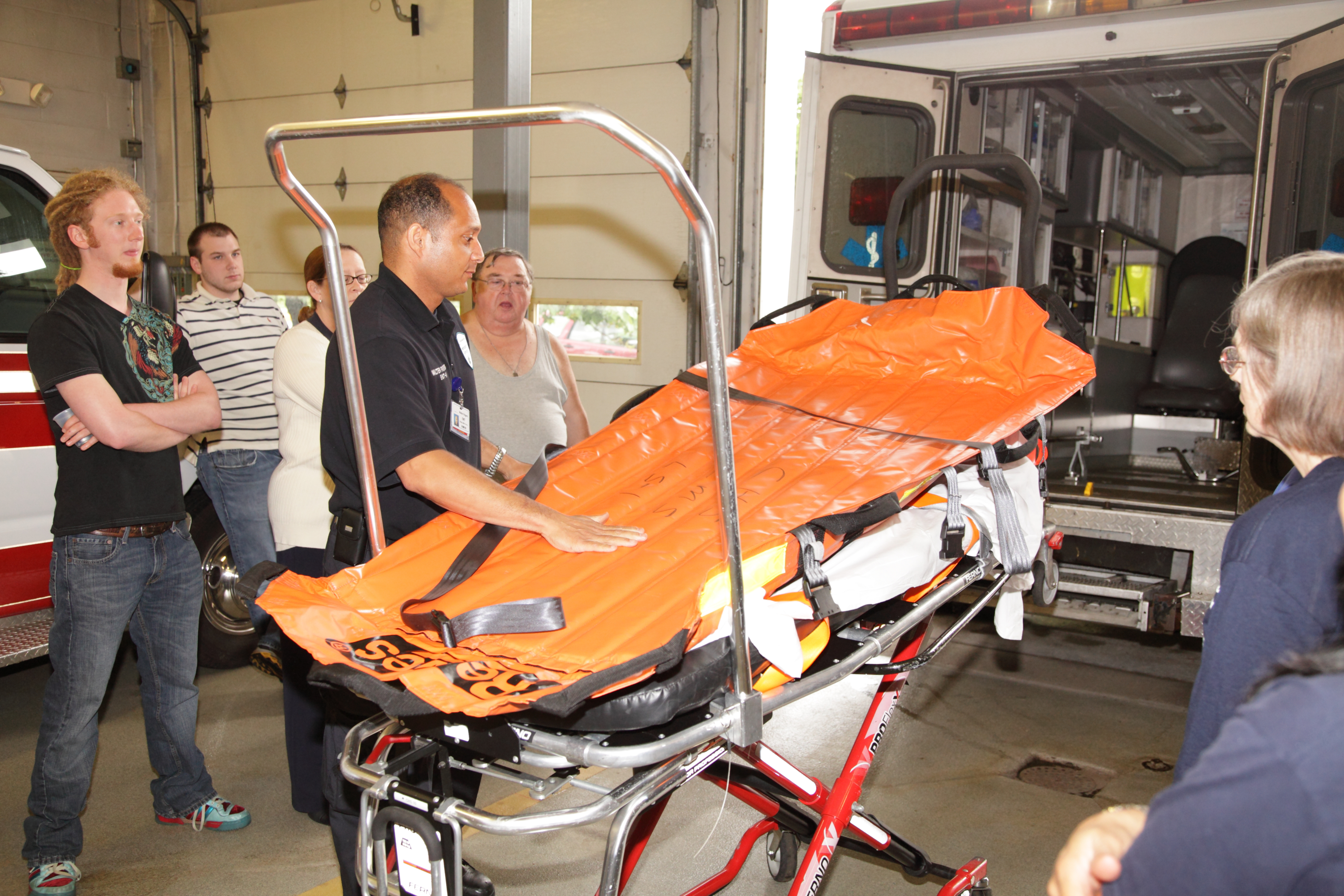 Walter Rogers demonstrates bariatric Reeves while Jacob Hammer, Jack Ferrara, Debbie Gorczycki, Dan Boone, and Joan Schwarzwalder look on.
