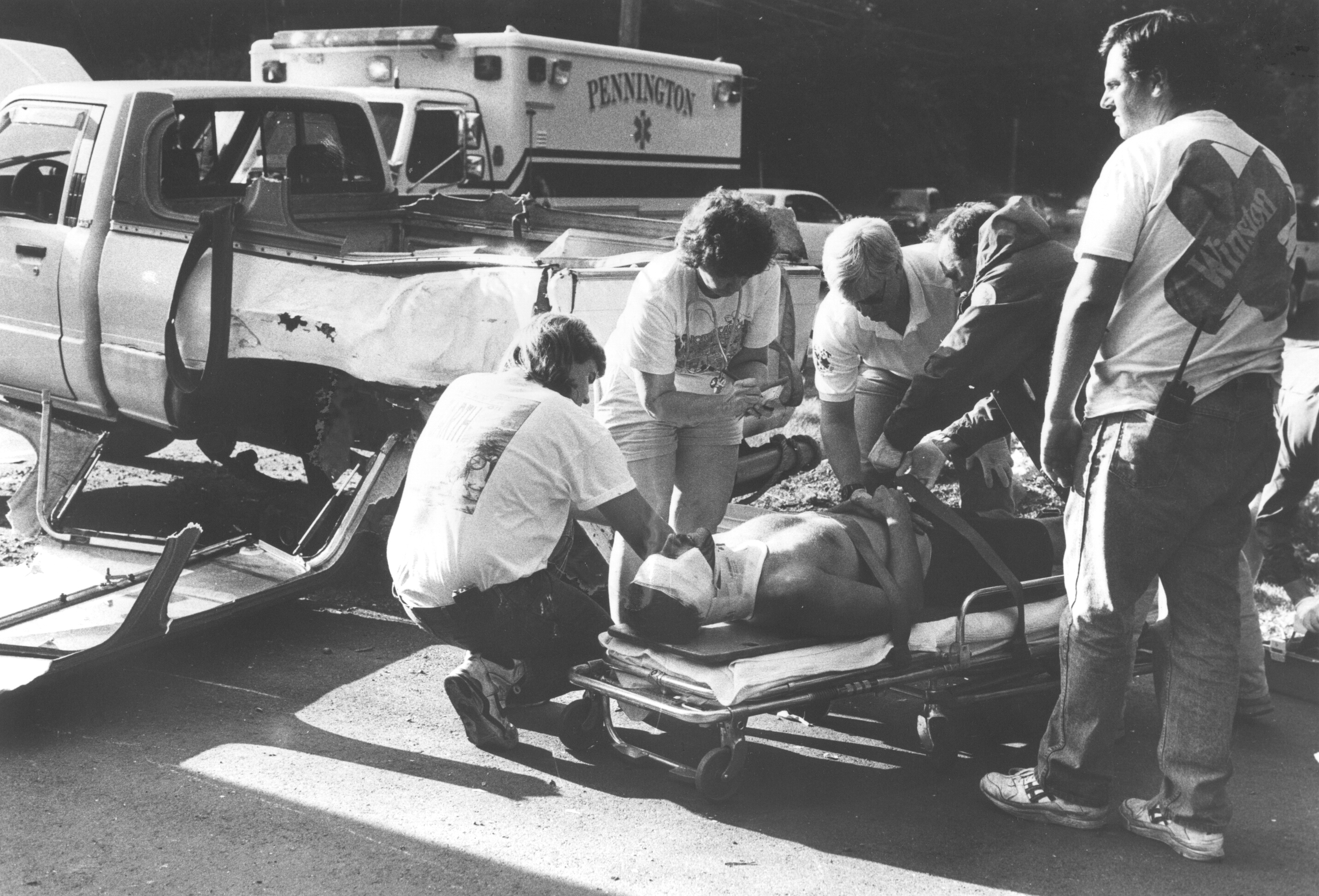 1990-1995 2 Sharon Szalontay with stethoscope, Dick Butterfoss to right of Sharon, maybe Jim Consolloy