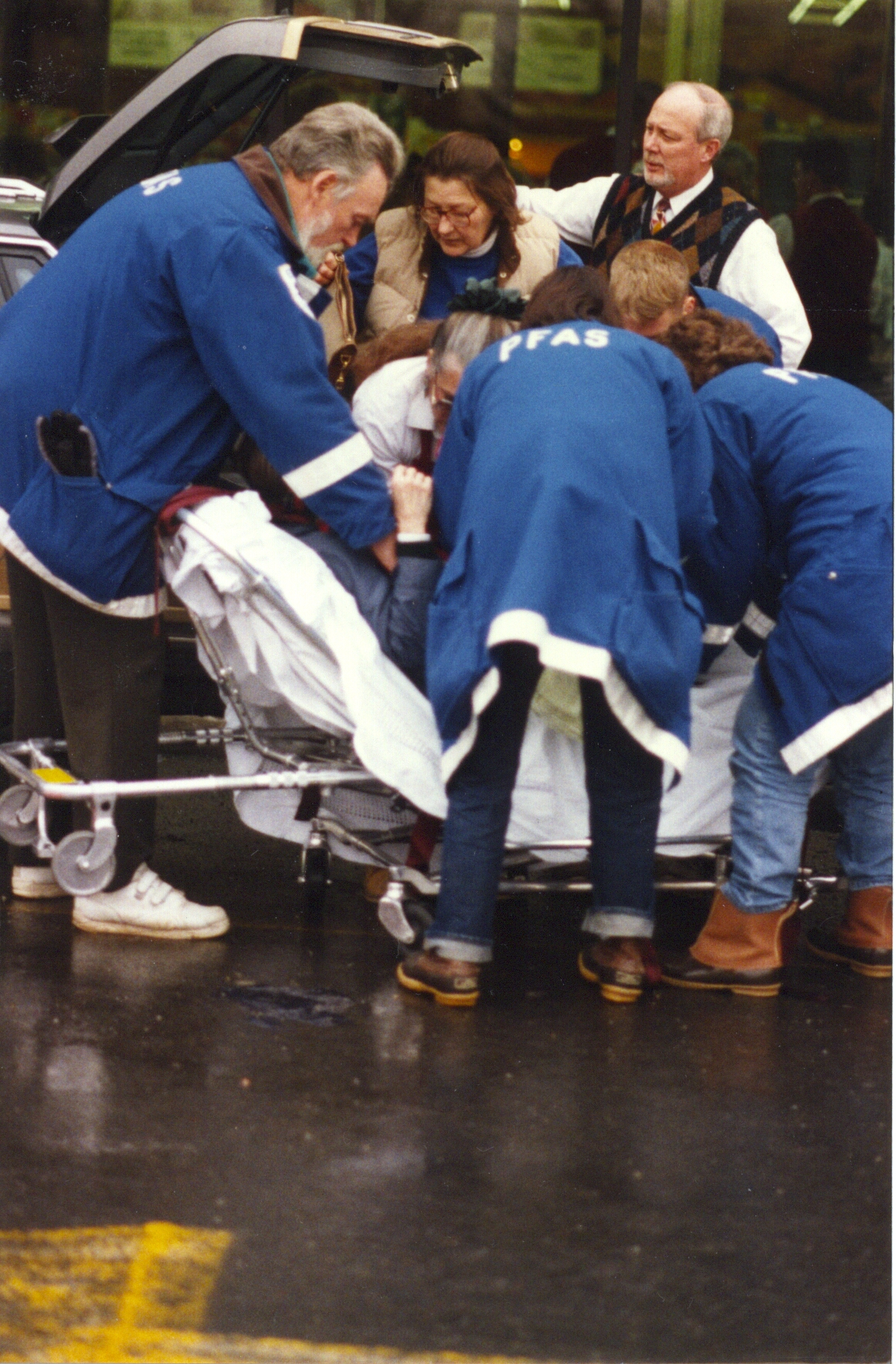 1990-1995 45 print dated 1995-04 Dick Bailey (standing with foot inside frame of stretcher)