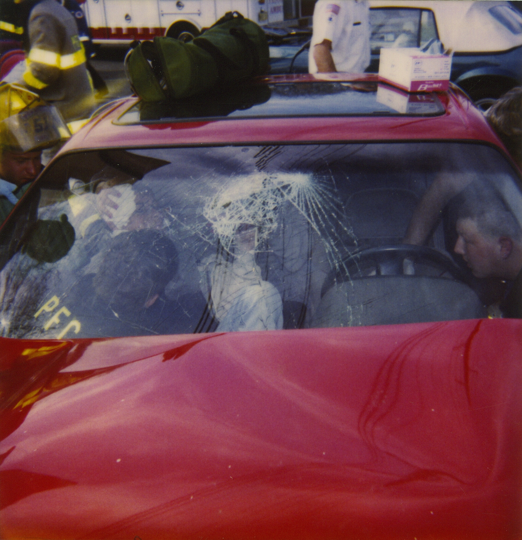 1995-4-17 windshield bowed out several inches from impact