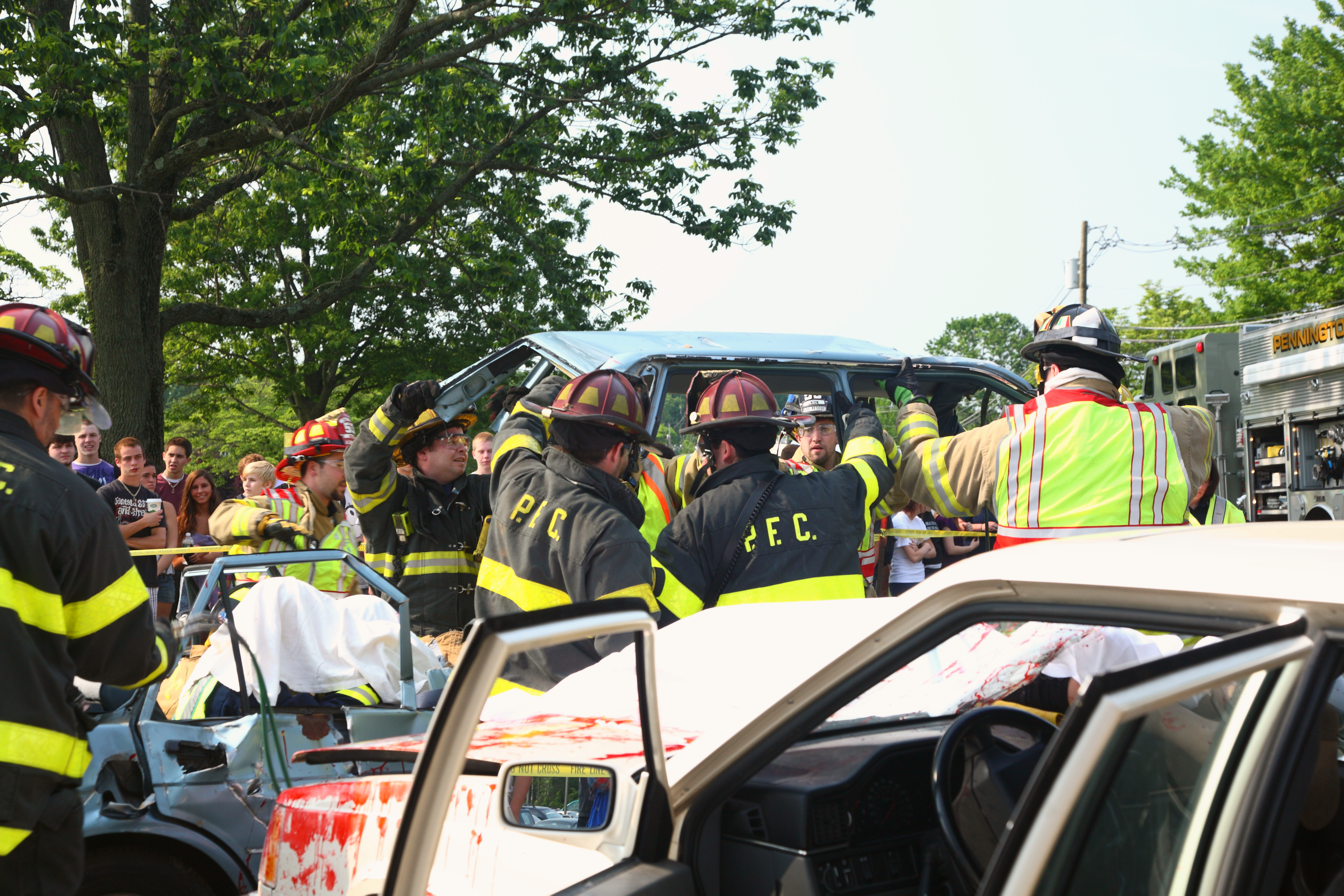 Pennington Fire Company carries roof away from patients.
