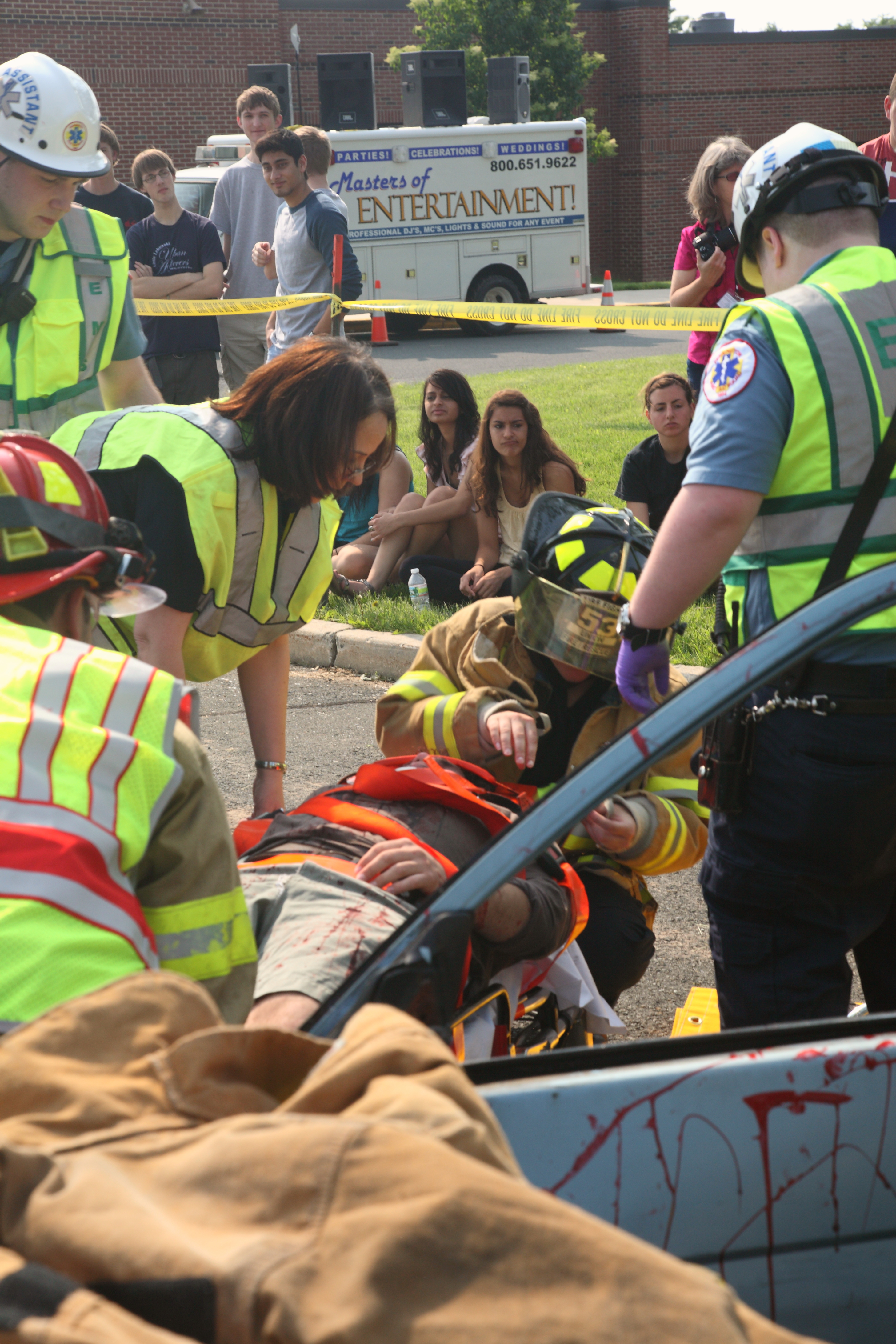 First critical patient, played by Alex Bhaskar, is removed from vehicle.