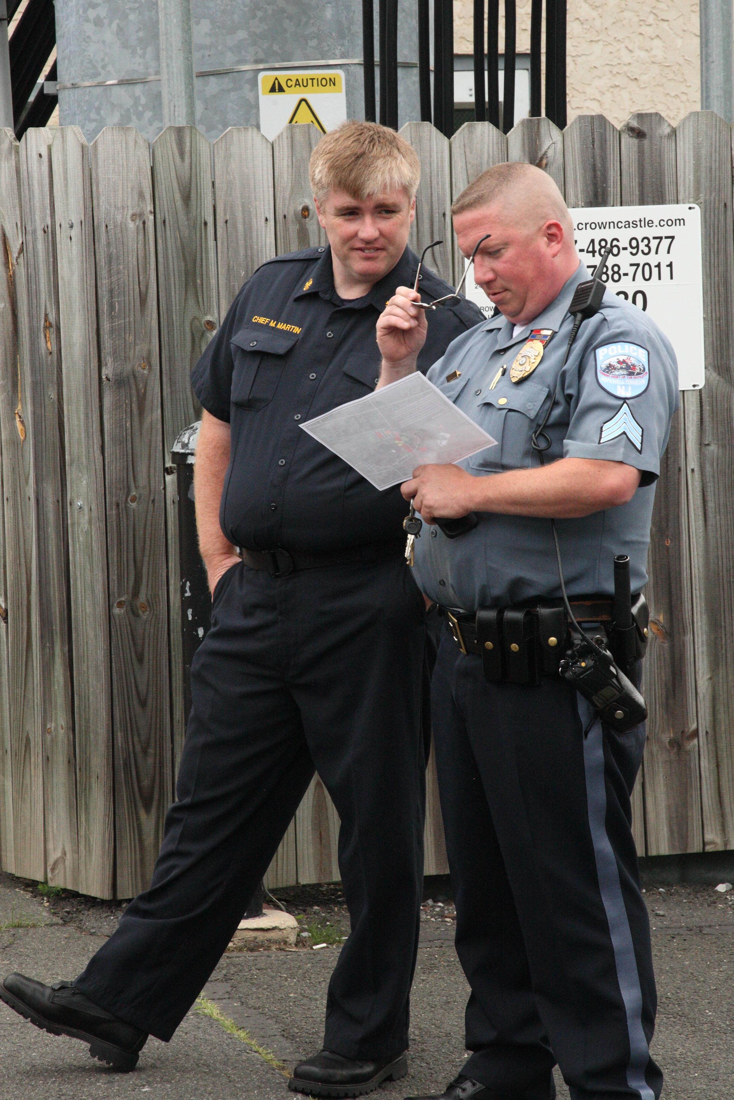 Hopewell Valley EMS Chief Matt Martin reviews plans with Hopewell Township police