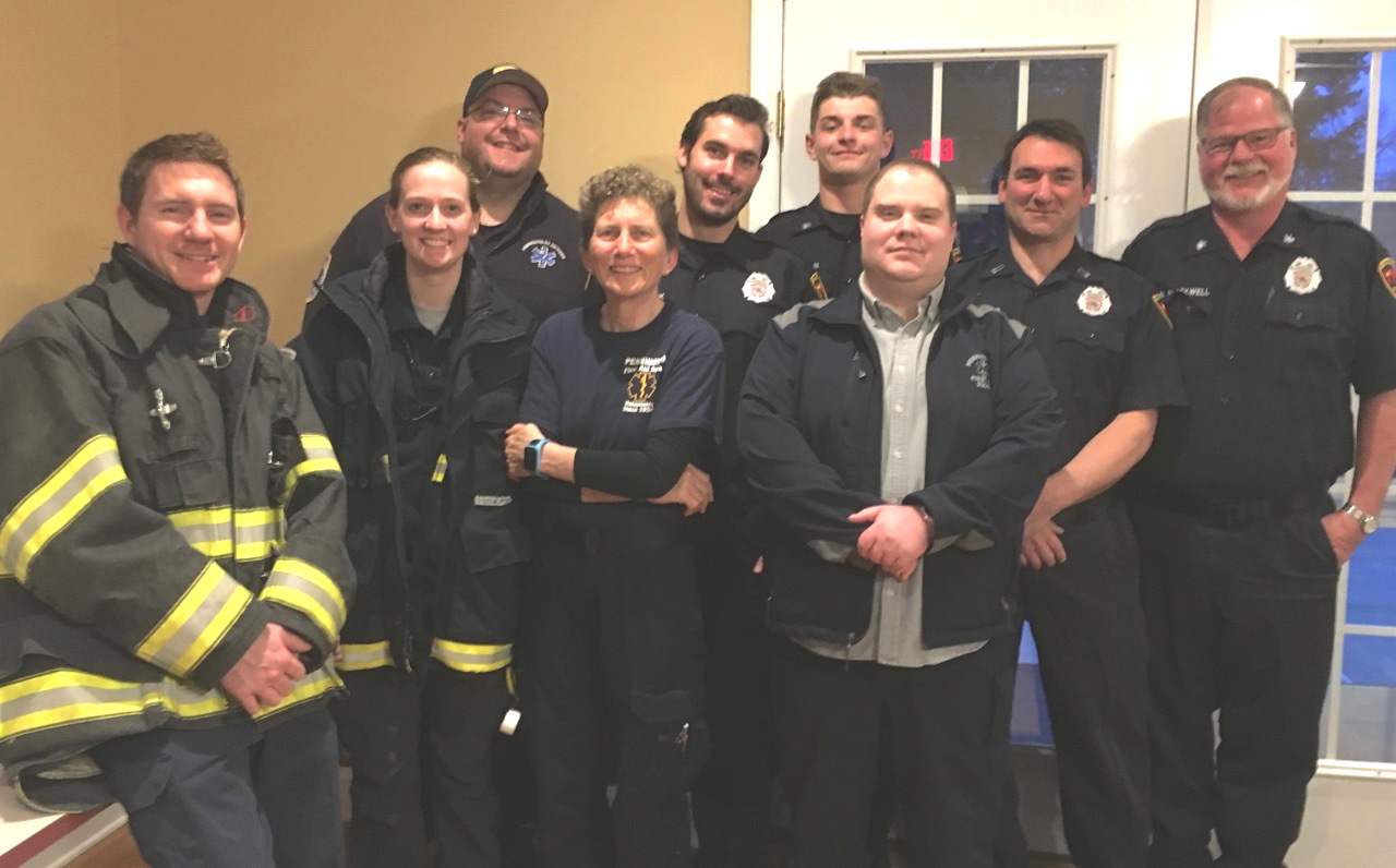 Officers and members of PFAS and Pennington fire met with residents of Woolsey Court as a public outreach to talk about our fire and EMS services, what we do, how we are financed, how and when to get help. The discussions were well received. Front row, left to right: Gareth Sutherland, PFC and PFAS; Linsay Becker, PFAS; Shelley Pennington, PFAS; John Muccioli, Captain PFAS