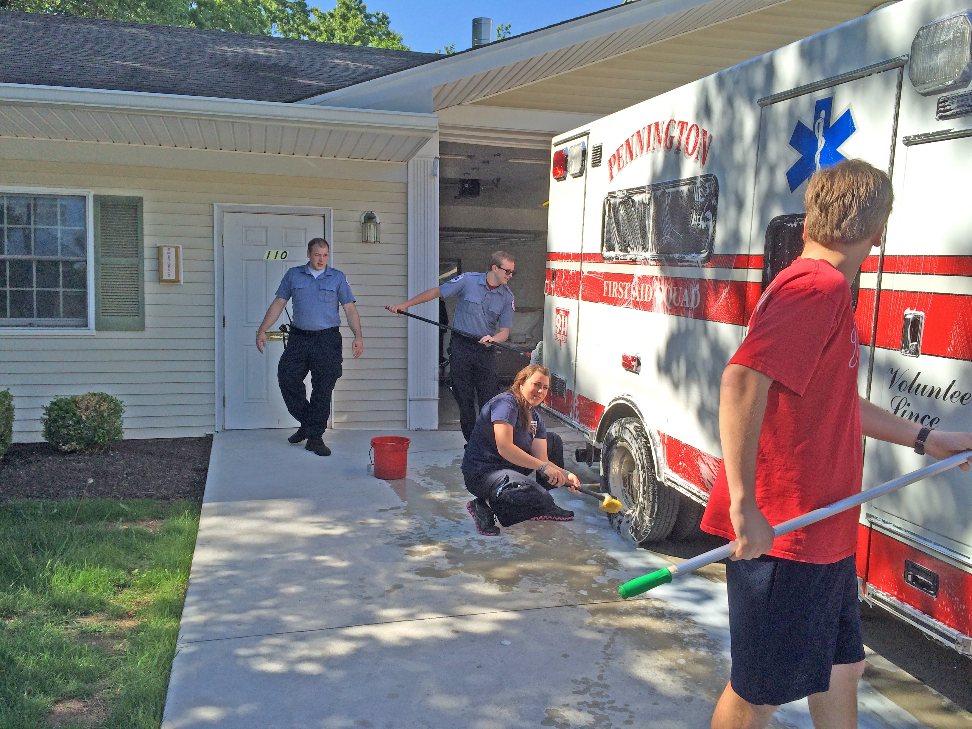 2014 Memorial Day Parade, Jack Ferrara with Avery Dorgan, Angela Parascando and Kyle Niederer washing 151-3